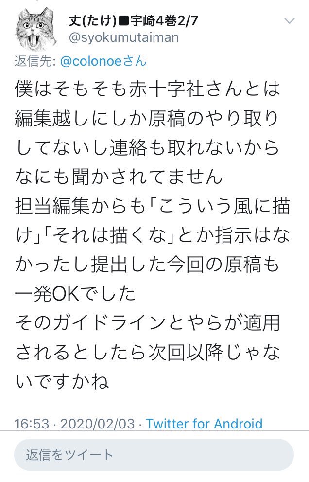 悔しがってんのかなんなのか感情がよくわかんないツイだけど、ガイドライン策定して今回それに沿って描くもの変えたの?