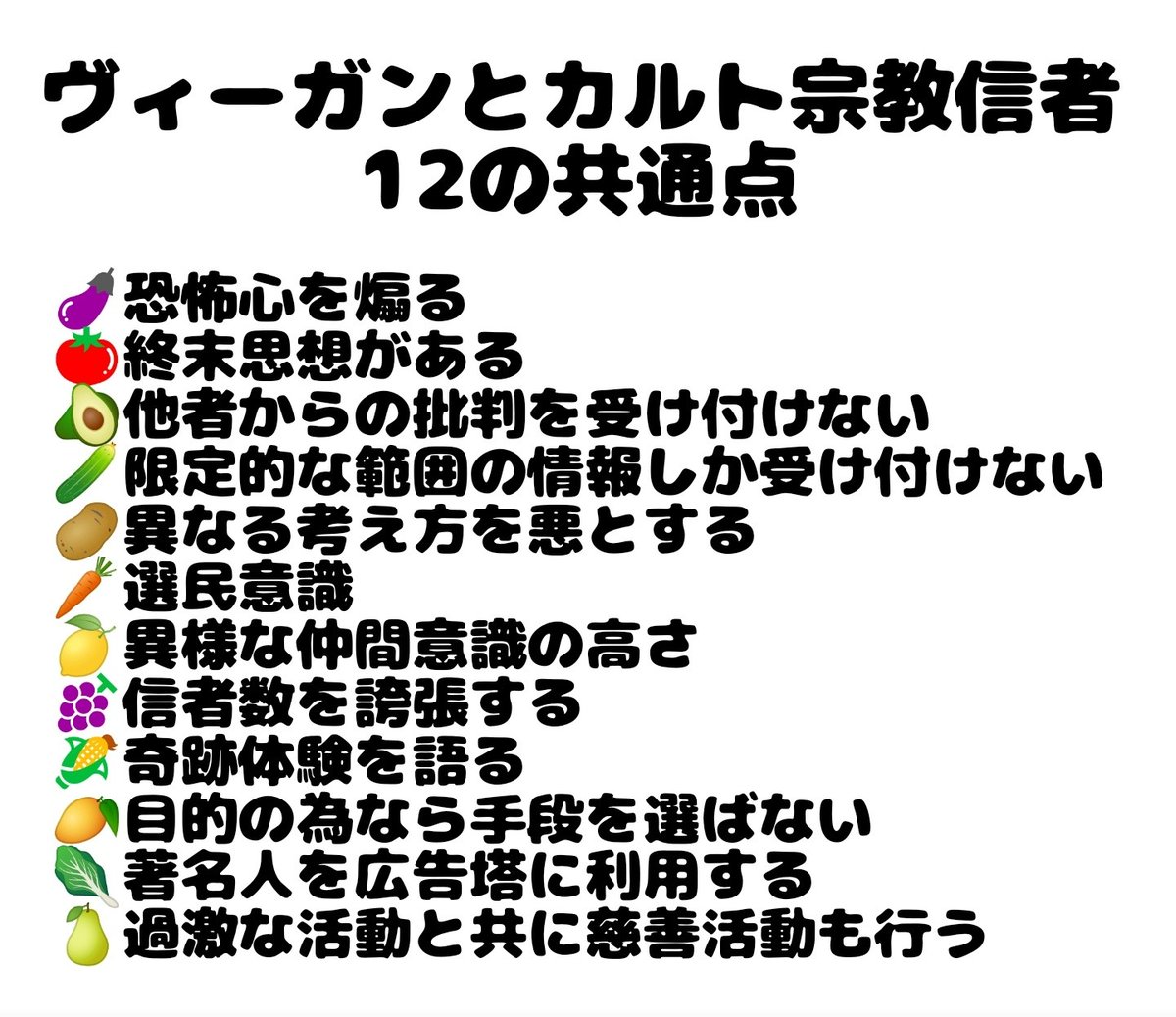 @meatman_vegan @Shiroiumeko 「健康になるためだったら死んでもいい」みたいなカルトの狂信者ですからね。自分の思い込みが全てで、どこにどんな本末転倒の被害が出ても「自分たちは善意でやった」と言い張るだけです。