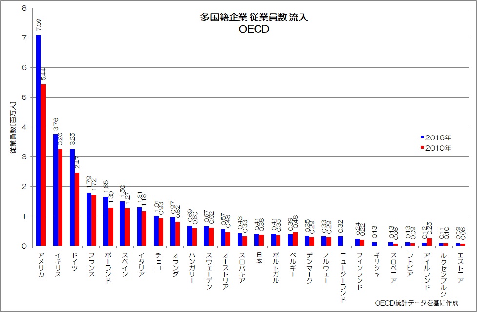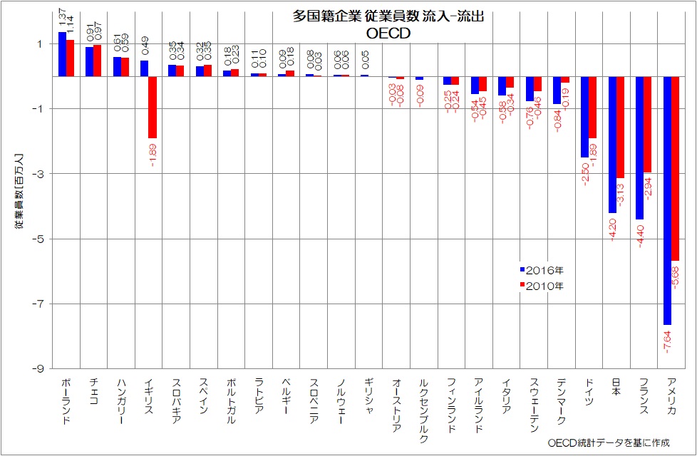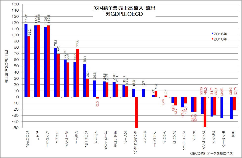 他の先進国は、自国企業の流出と、他国企業の流入が双方向的です。