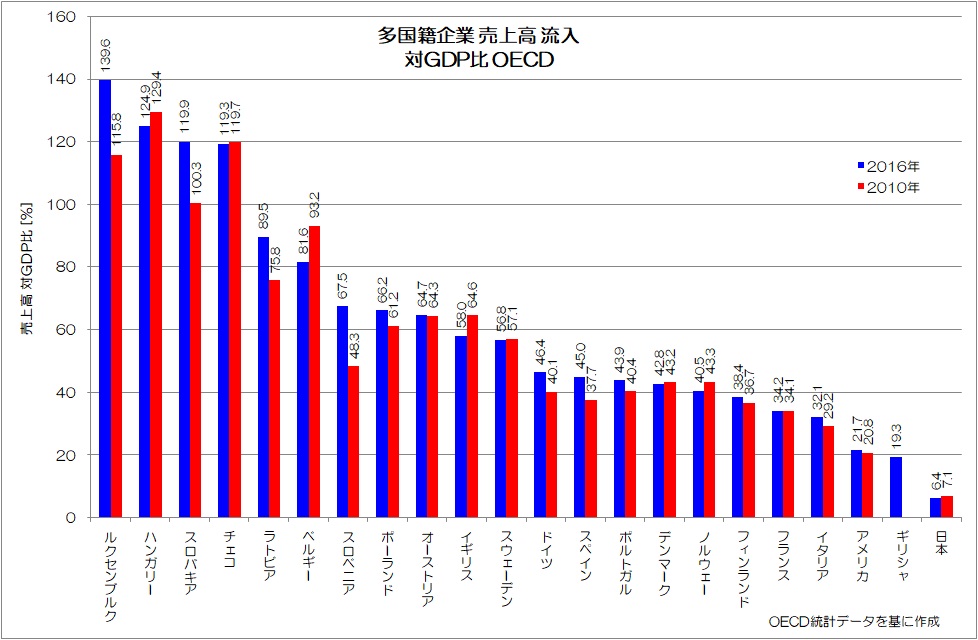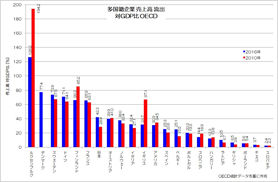多国籍企業の売上高 対GDP比