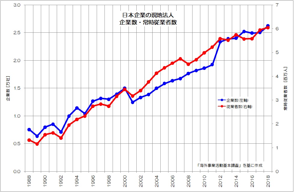 国内統計を見ても、日本企業の現地法人は右肩上がりです。