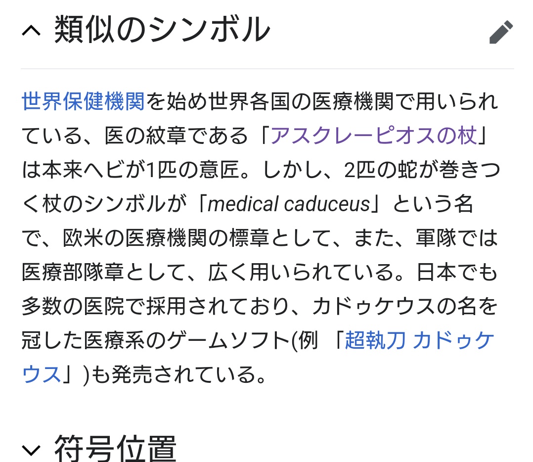 から誤用されたものの、そのまま医療機関のシンボルとしてカドゥケウスの杖の形が使用されているので、医療機関、医療関係の人達が、これをシンボルに用いるのはおかしな話ではないです。 twitter.com/gebaakai/statu…
