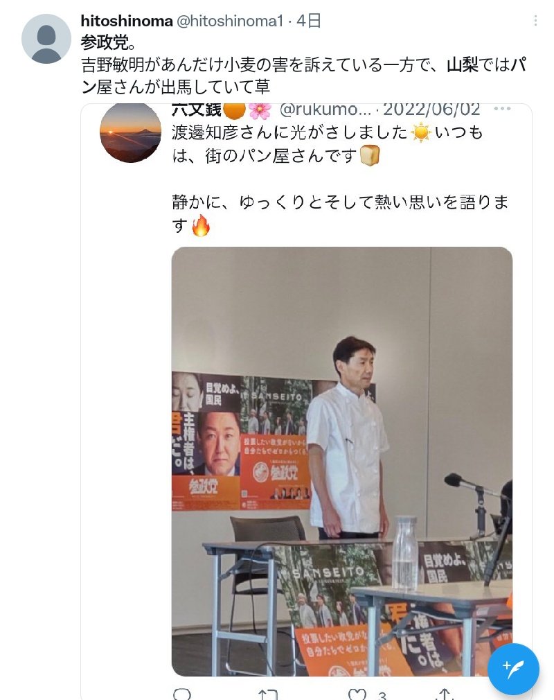 参政党立候補者「メリケン粉を食べるようになってから、日本人のがんが増えている」